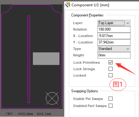 1.解锁器件里面的槽孔(图1 Lock Primitives打勾取消);