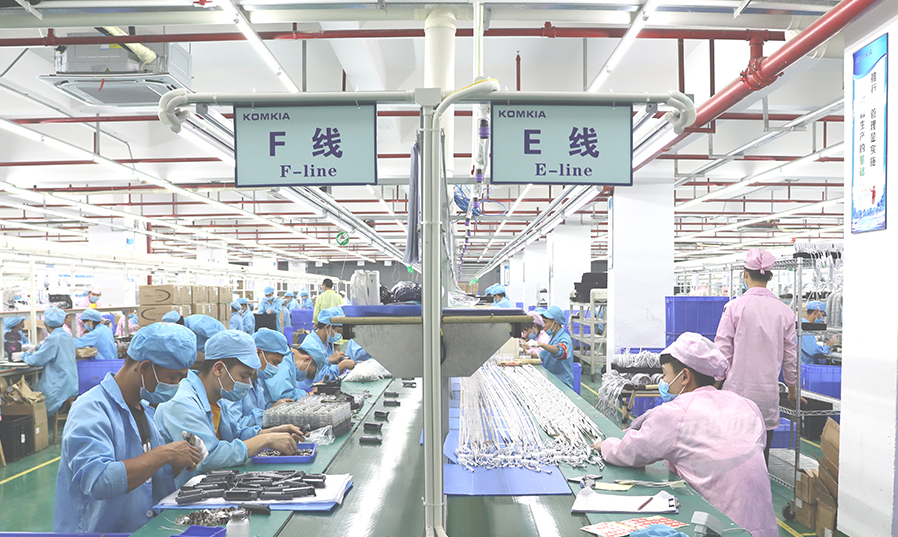 生产设备:23条生产组装流水线,配备老化房、TP房、激光镭雕机、热缩机等。